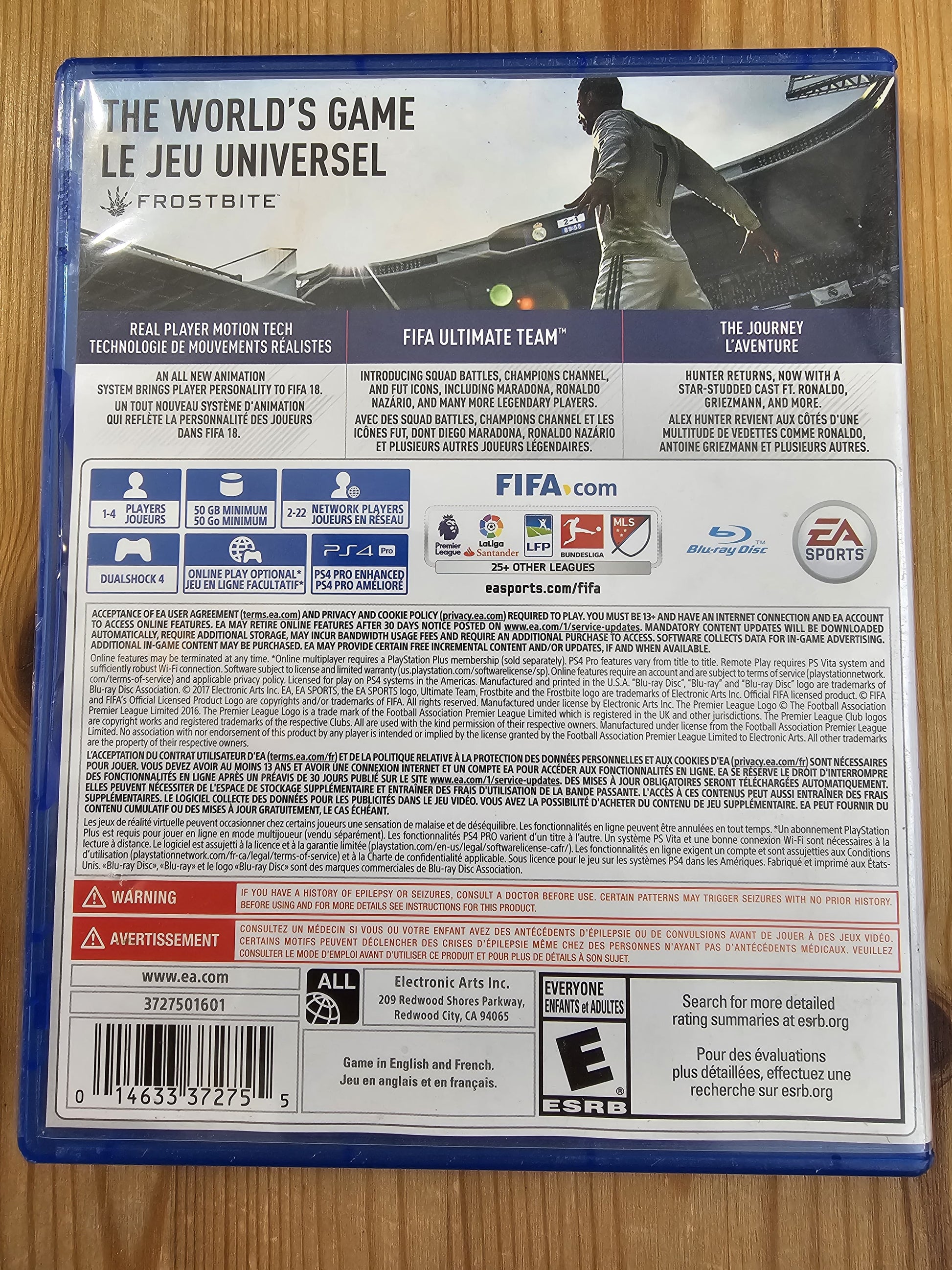 Experience the beautiful game like never before with FIFA 18 for the Sony PlayStation 4. This entry in the acclaimed football series boasts a rich and immersive gameplay that soccer enthusiasts and casual players alike will appreciate. With a focus on strategy, tactics, and a responsive playing experience, FIFA 18 brings to life the thrill of the sport on your console. Whether you're looking to lead your favorite team to victory in a intense match or work your way through a season of challenges and high stakes, FIFA 18 offers a diverse range of modes to keep your gaming session engaging. Sharpen your skills, build your ultimate team, and compete in the world's game with a title that's synonymous with quality and authenticity.